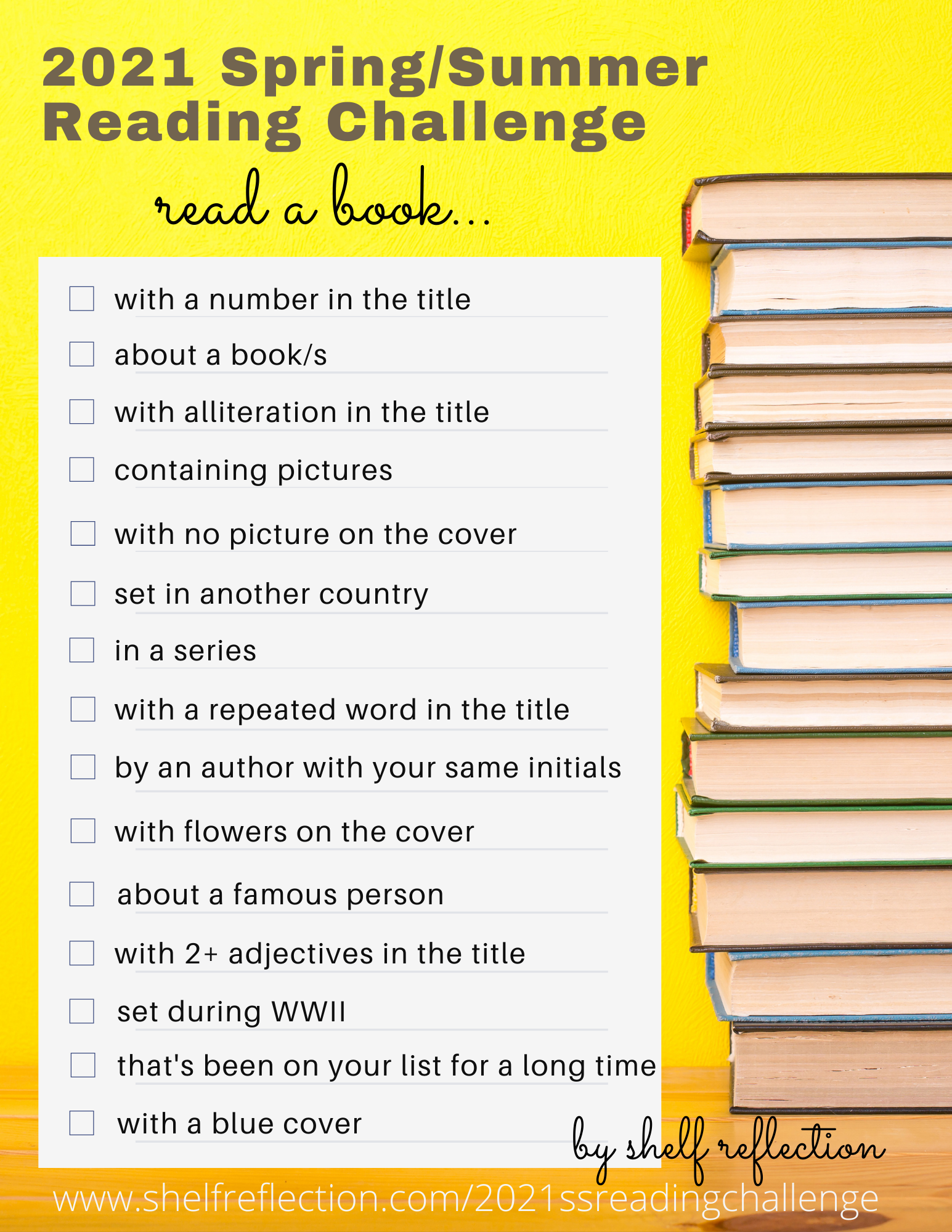 Here’s my list with what I plan to read for each one. If you would like to participate in the challenge, it would be awesome if you could comment on this post with whatever category/book you plan to read so that other readers can get more ideas for each category!
